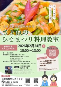 【終了しました】三笠高校卒業生料理教室 2月24日(火)さとねのひなまつり料理教室